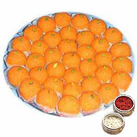 Motichur Ladoo 1/2 Kg with Free Roli Chawal .Laddoos are really irresistable, drawing everyone towards themselves.Relish your taste buds with these delicious motichur laddoos.
